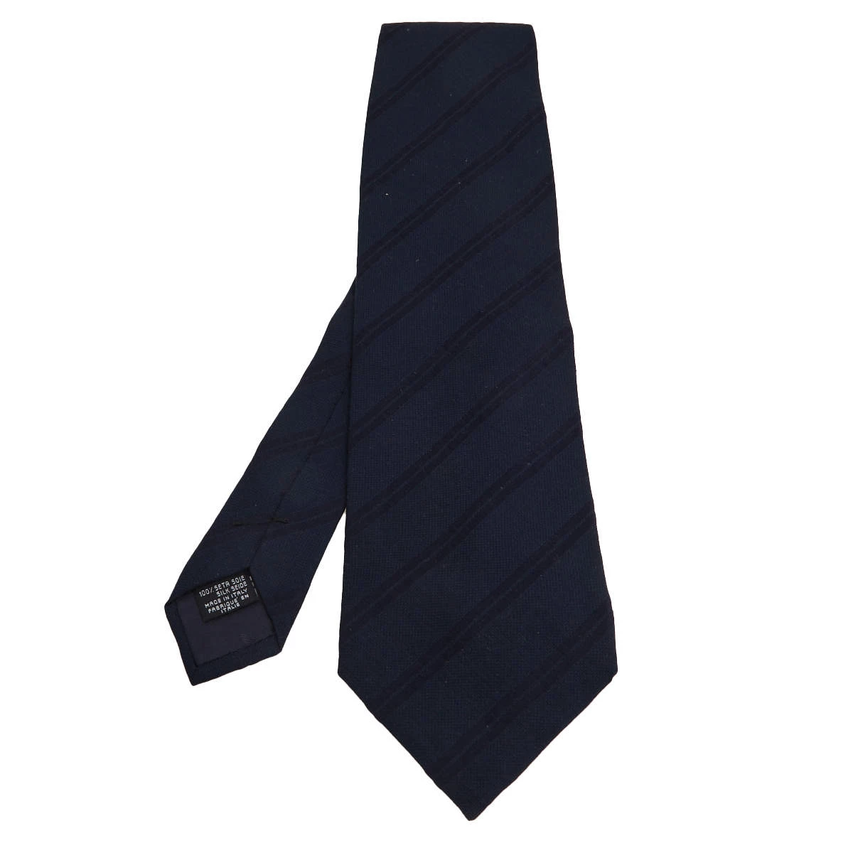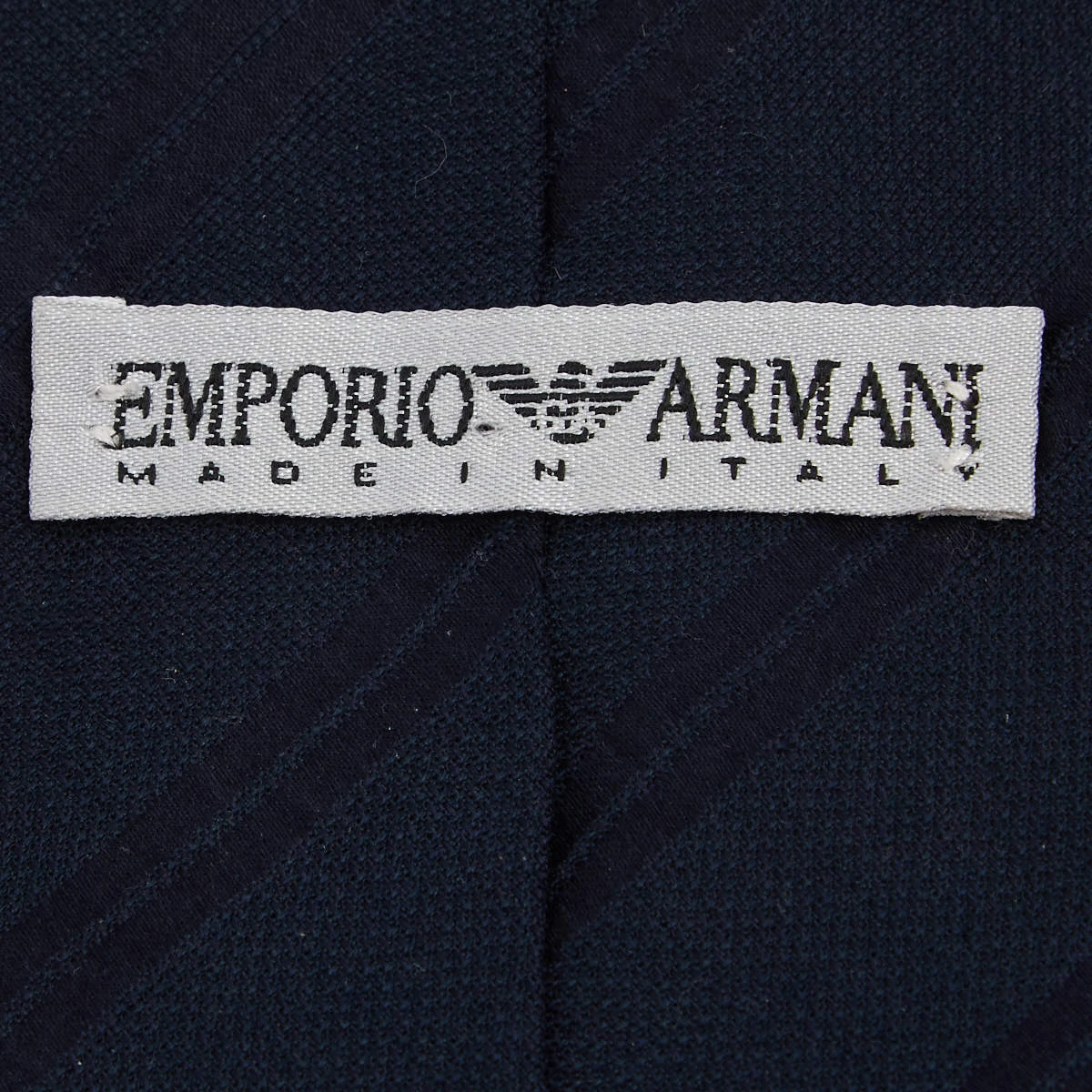 Emporio Armani Vintage Navy Blue Tonal Striped Silk Tie For Men