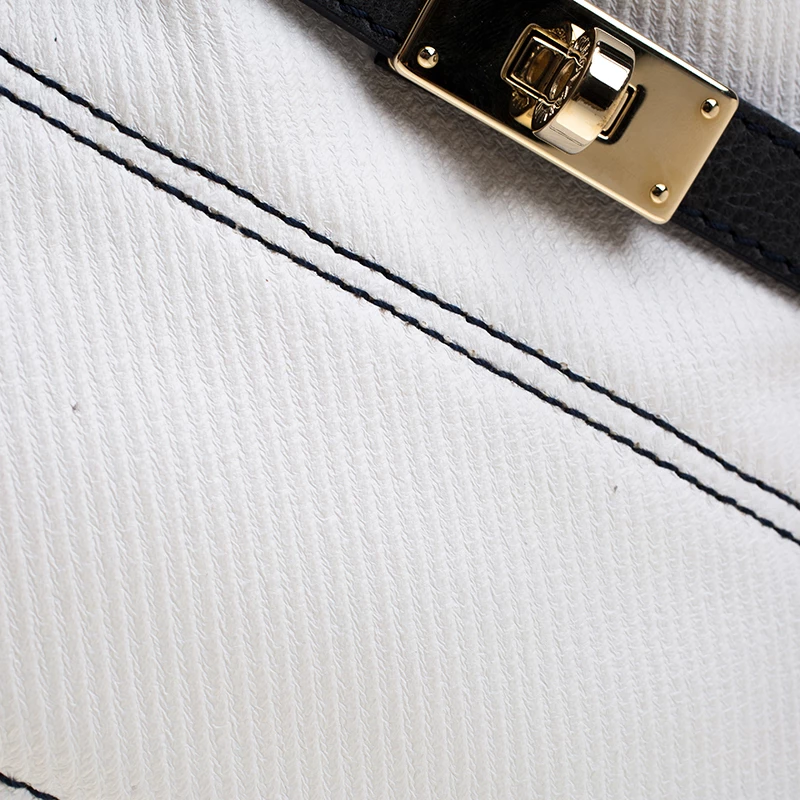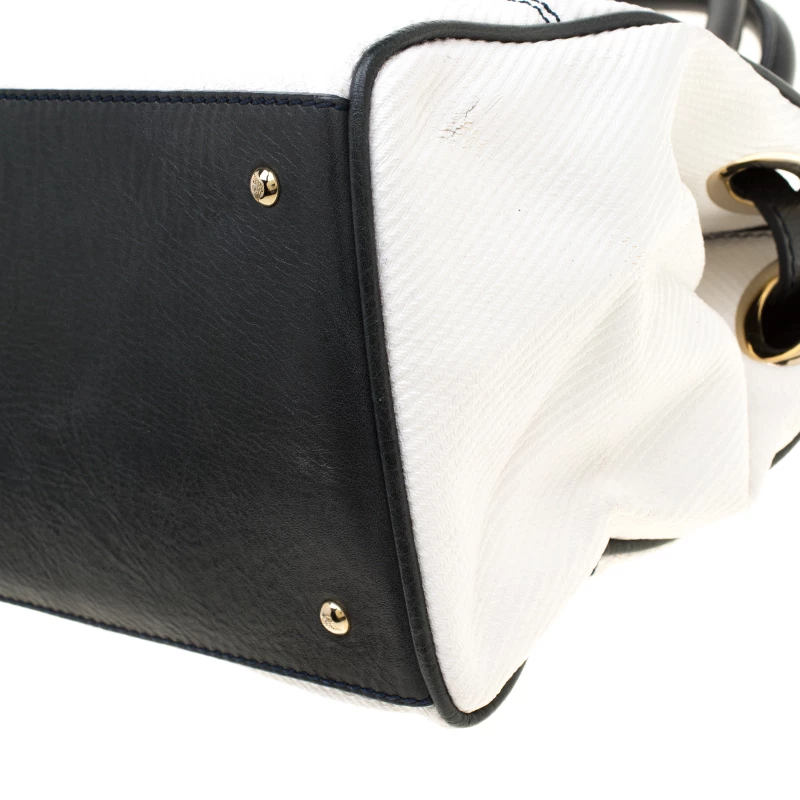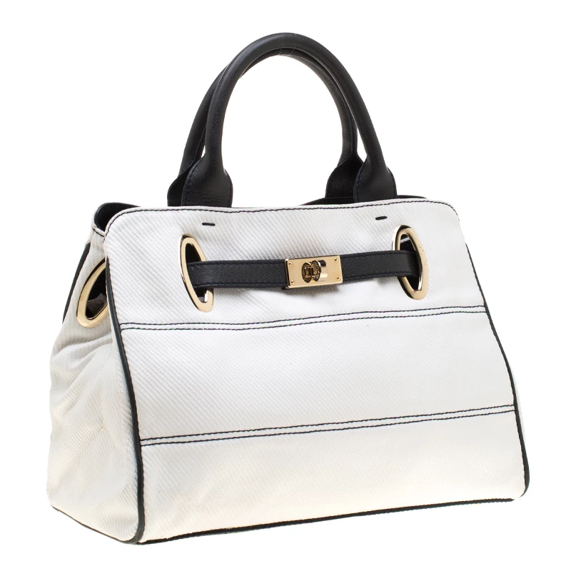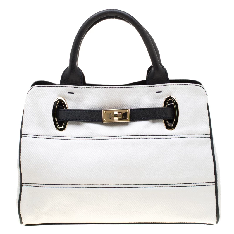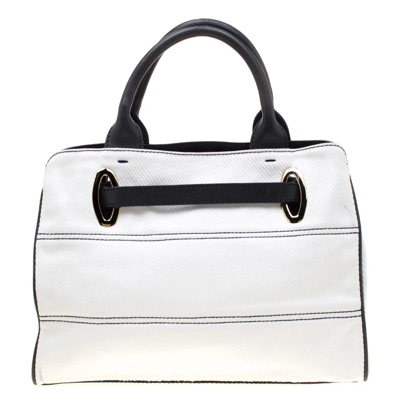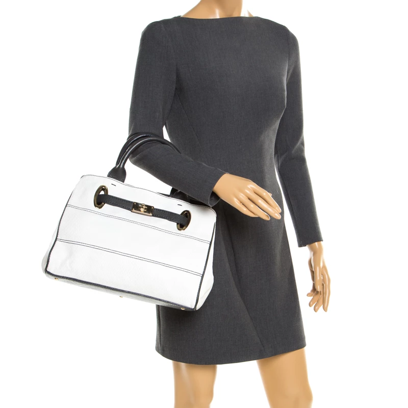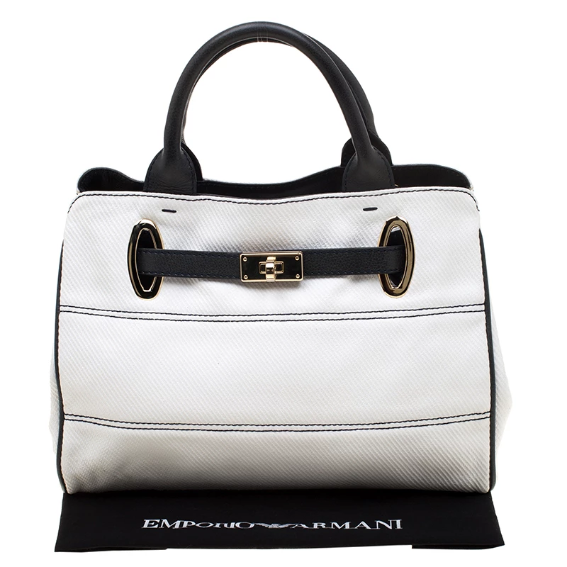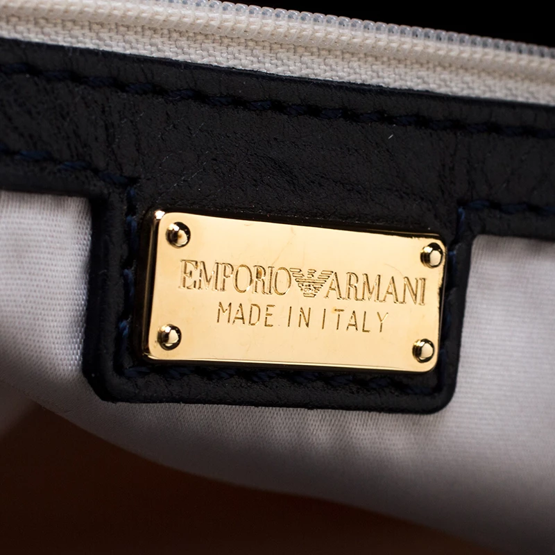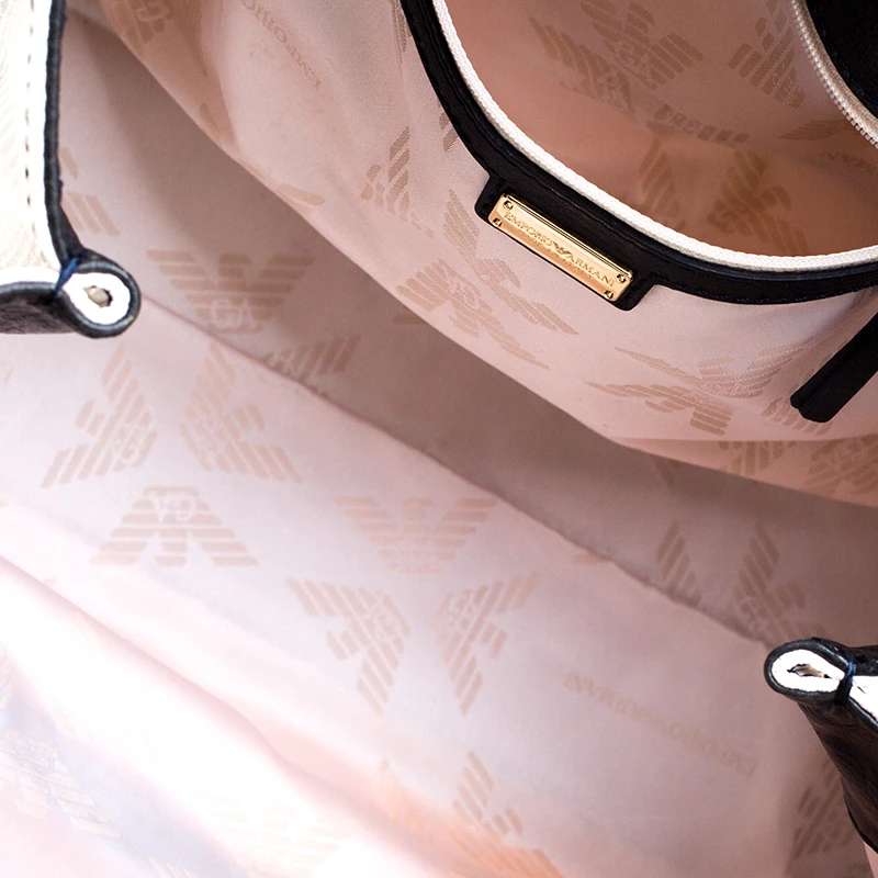 Make an amazing appearance with this masterfully designed tote by Emporio Armani. The tote offers a stylish bid and is crafted from coated canvas and enhanced with leather trims. The bag features gold-tone hardware, protective metal feet, and a fabric lined interior.