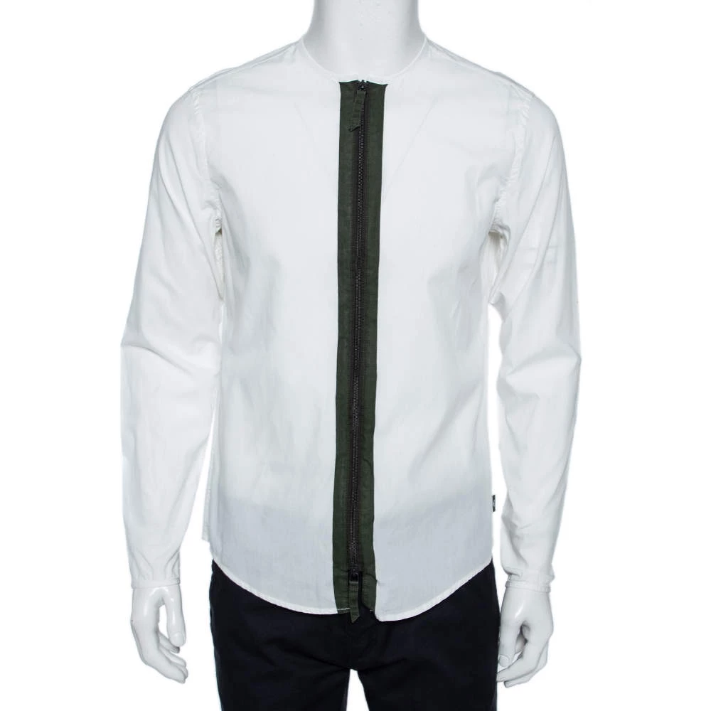 Shirts are an indispensable part of a man’s wardrobe, so Emporio Armani brings you a creation that is both versatile and stylish. It is made from cotton in a white shade, it features a contrasting trim detail along the zipper fastening.