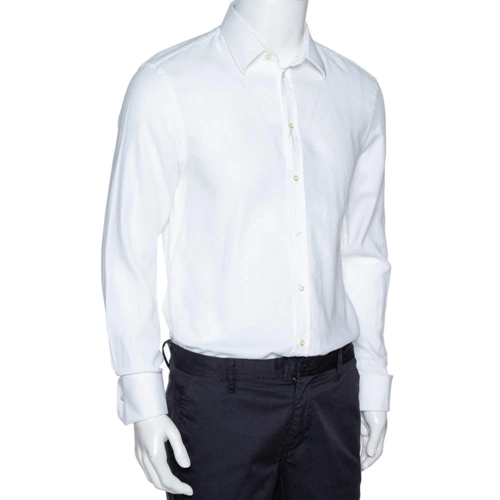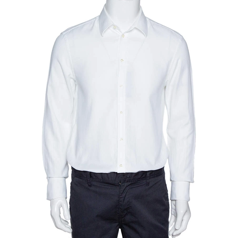 When it comes to subtle formal designs, Emporio Armani leads the choice. This shirt features jacquard work all over, long cuffed sleeves and a sharp collar. Cut from cotton, wear this out with smart-fitting trousers in contrasting colors to balance the look.