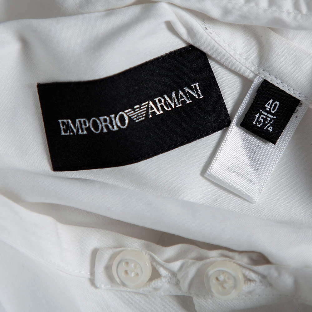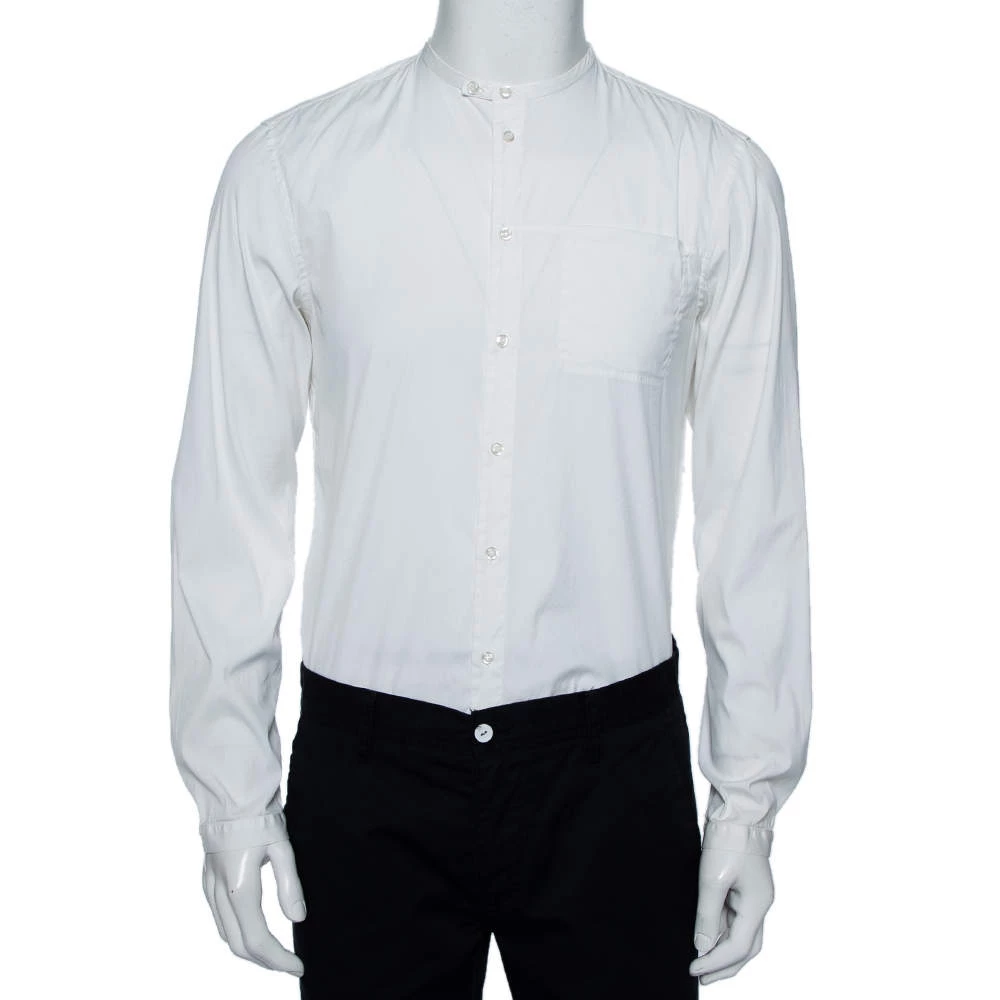 Shirts are an indispensable part of a man’s wardrobe, so Emporio Armani brings you a creation that is both versatile and stylish. It is made from cotton in a white shade, featuring a stand collar and long sleeves.