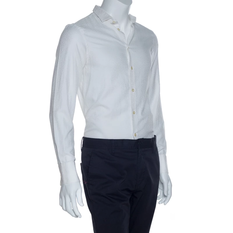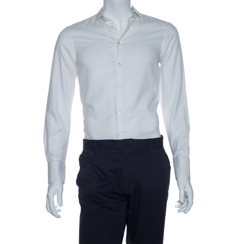 Embrace the new fashion with this incredible shirt from Emporio Armani. Modest yet chic is this shirt in white. A perfect pick of formal wear is this pure cotton shirt.