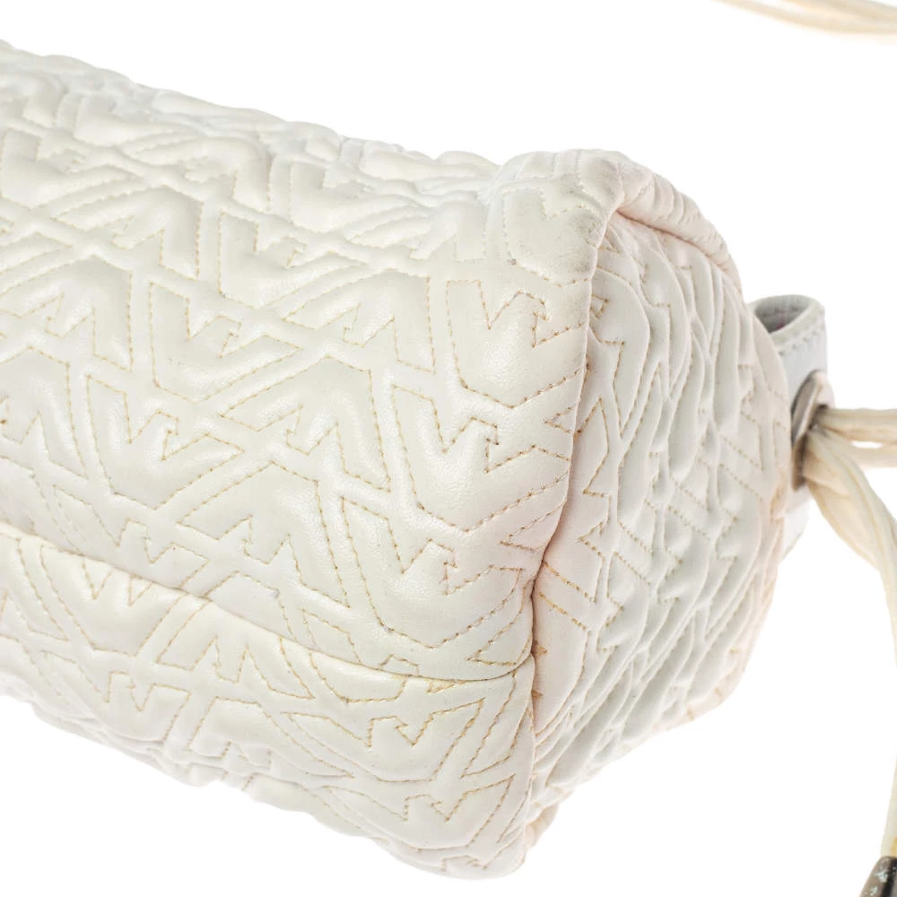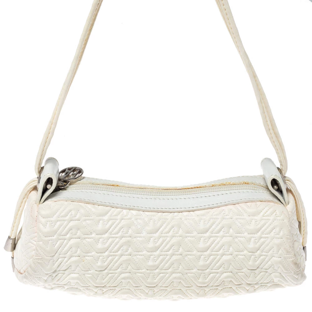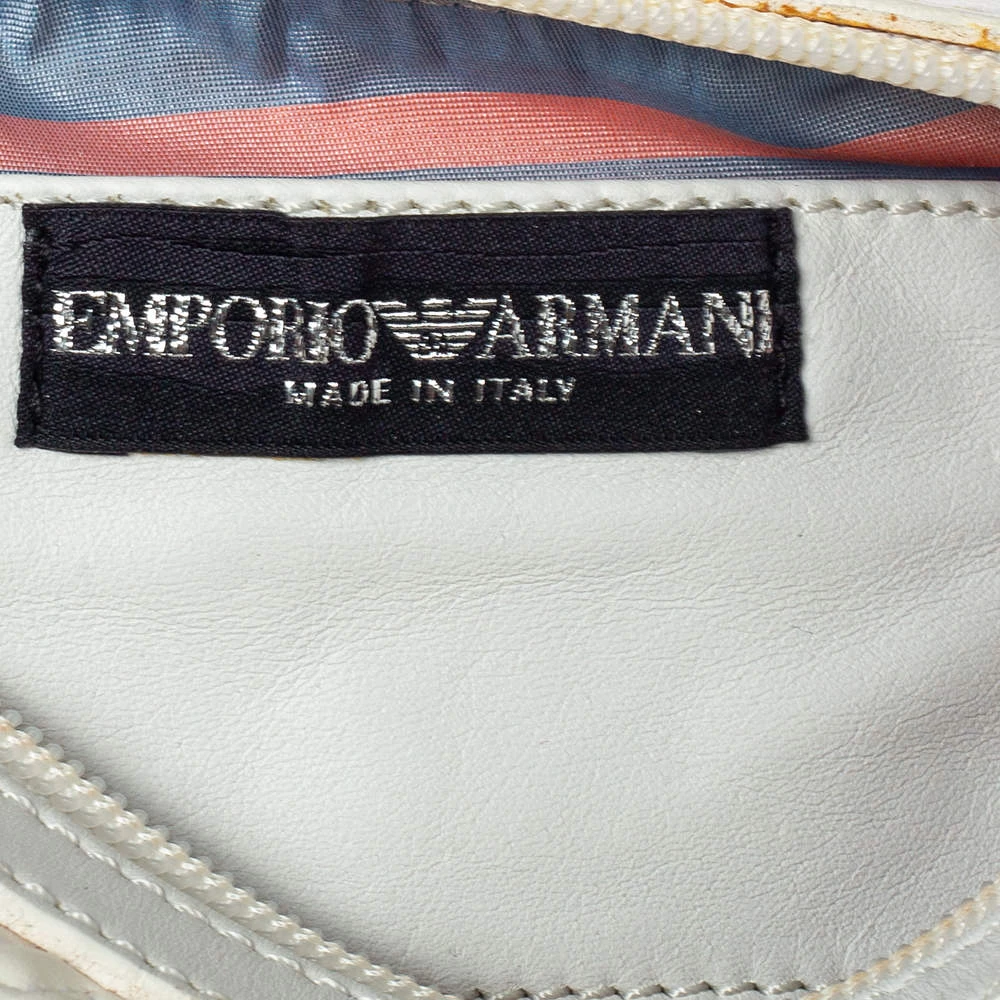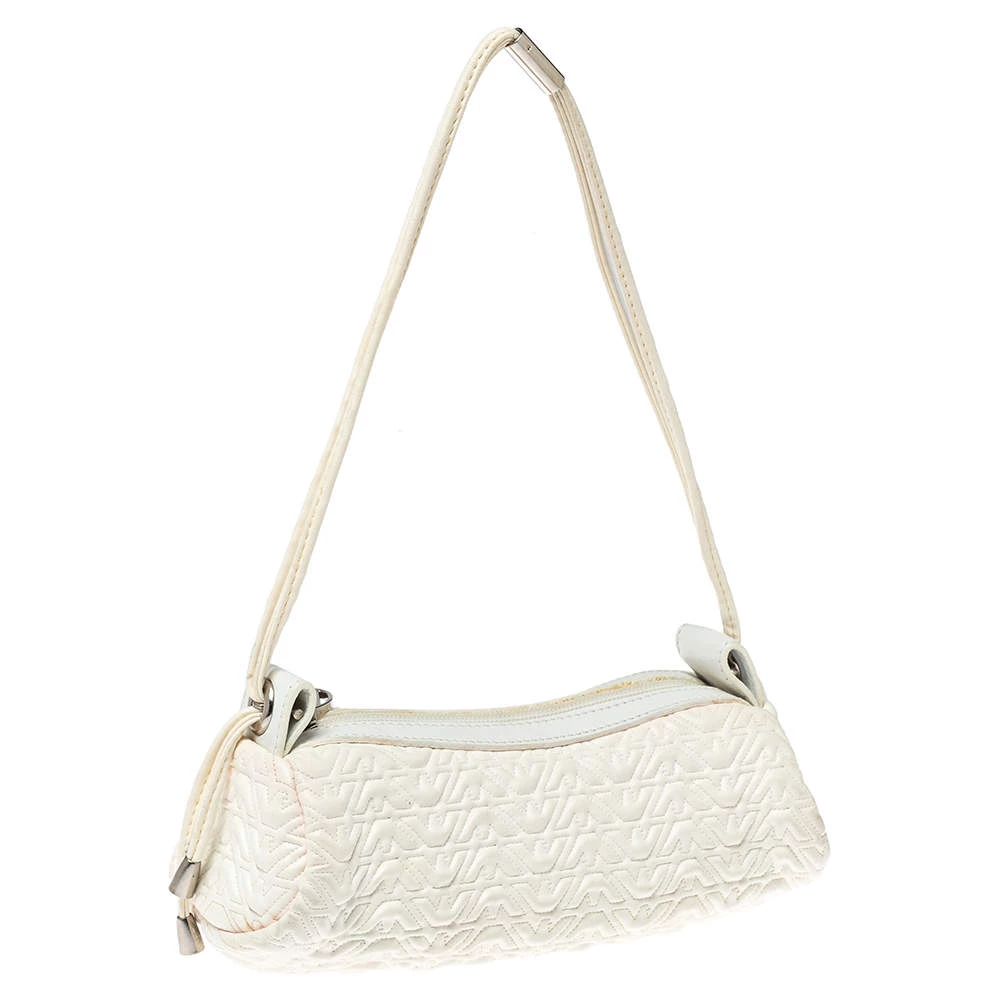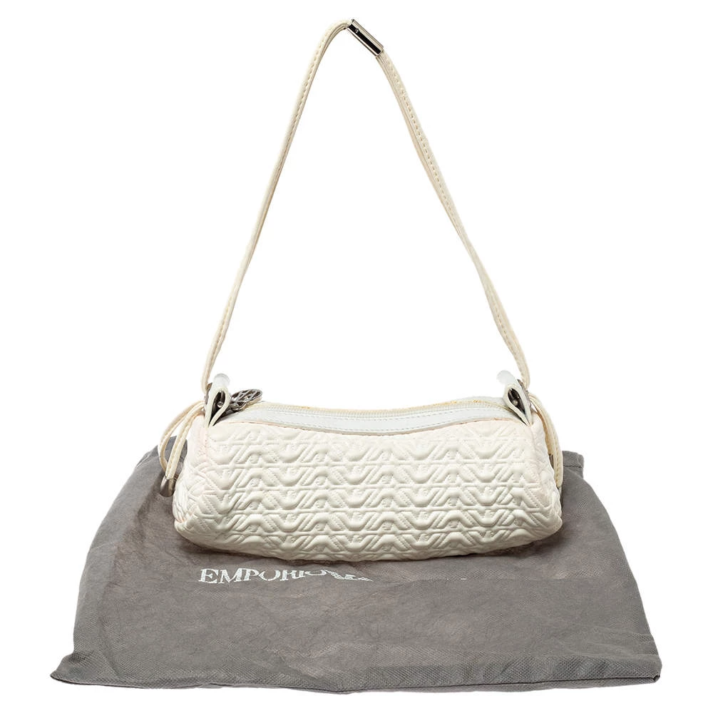 This handy Pochette bag is from Emporio Armani. It has been crafted in Italy and made from quilted rubber and leather. The pochette is complete with a single handle, a nylon interior, and silver-tone hardware.
