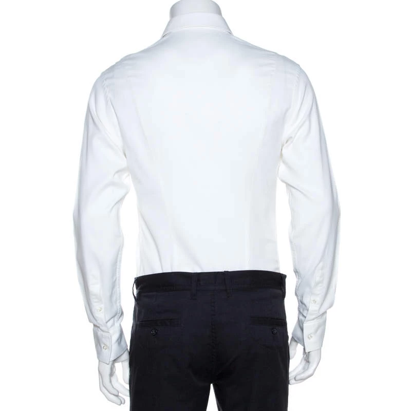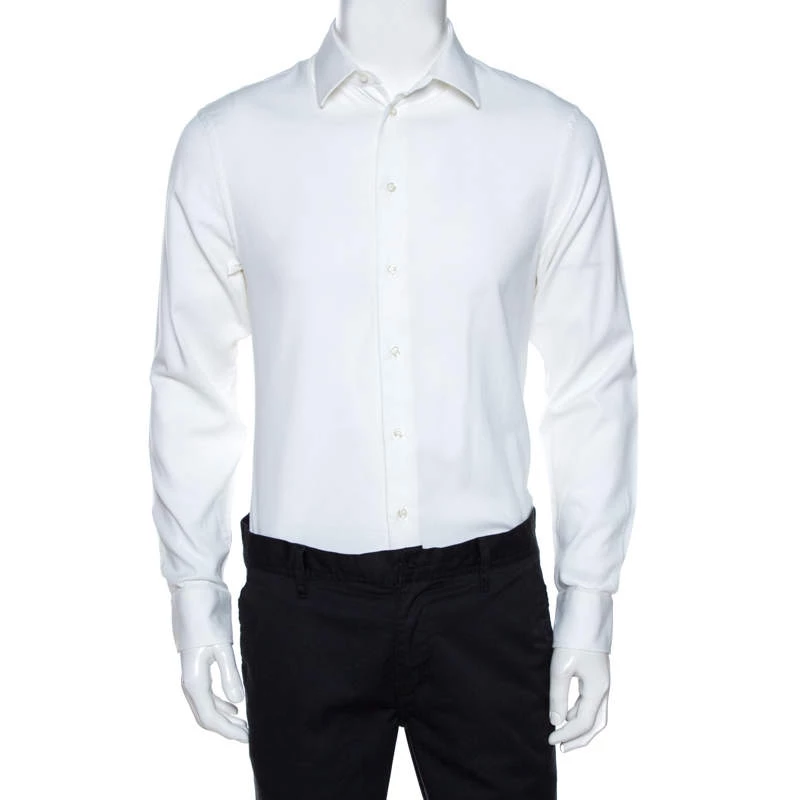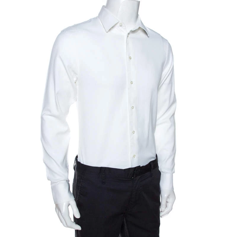 Add a dash of sophistication to your closet with this shirt from Emporio Armani. The textured finish all over the white body adds the right character to this cotton blend shirt while the smart silhouette makes it ideal to be worn for both work and off-duty.