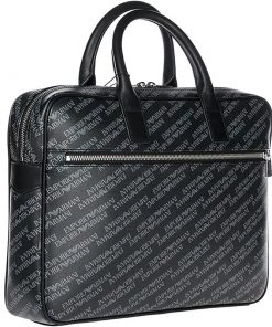 Emporio Armani Black Monogram Leather Laptop Bag For Men